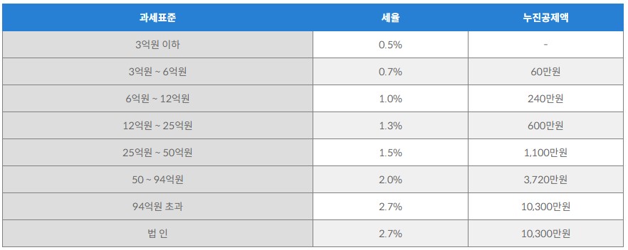 각 구간별 종부세율은 아래와 같습니다.